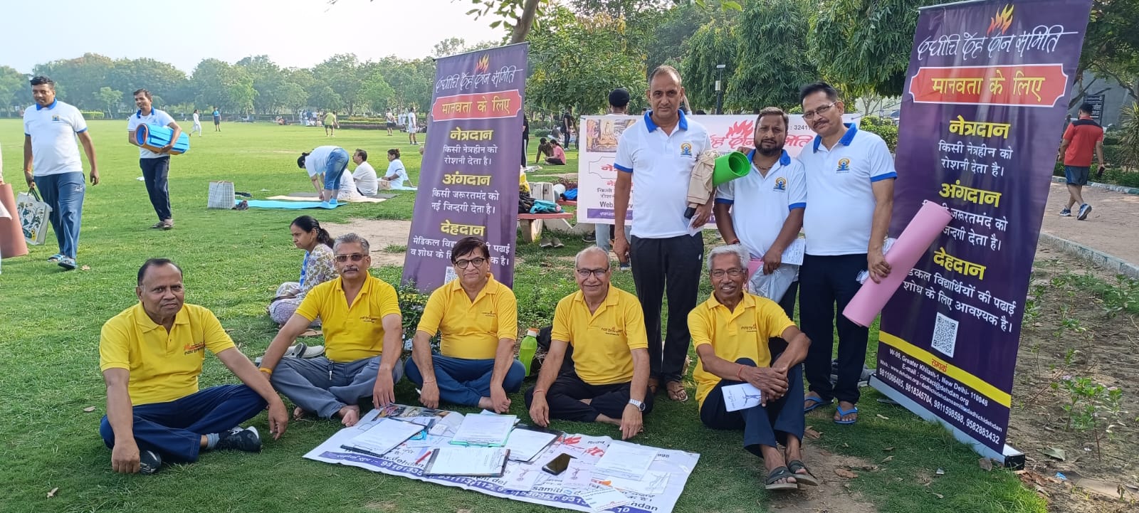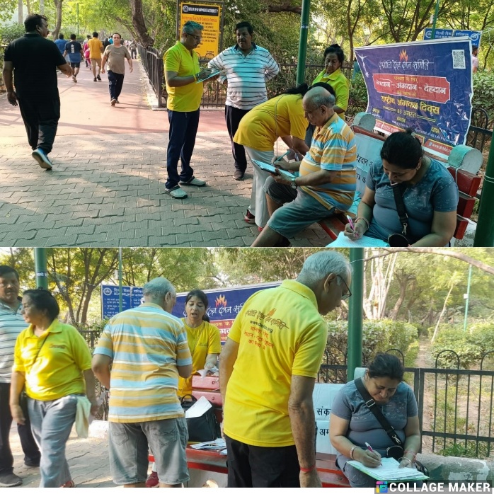 On 23rd May 2025, an impactful awareness programme was conducted at District Park, Sector-14, Rohini, aimed at educating morning walkers and yoga practitioners about the significance of eye, organ, and body donation. The event was organized by the Dadhichi Deh Dan Samiti, with active participation from volunteers Padma Batra Ji, Sunita Sharma Ji, Vishal Kalra Ji, and G.P. Tayal Ji.