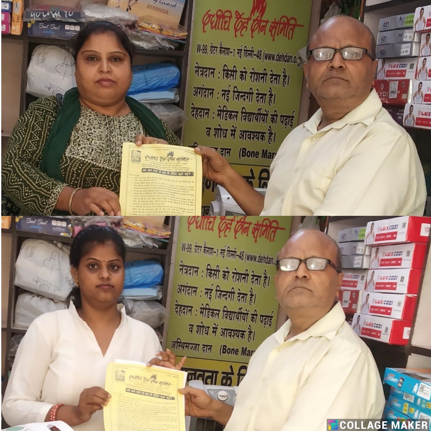 सरिता भाटिया जी ने उपस्थित लोगों को अंगदान और देहदान के महत्व के प्रति जागरूक किया। सुरेश चौधरी जी ने इस जागरूकता अभियान में सहयोग दिया।