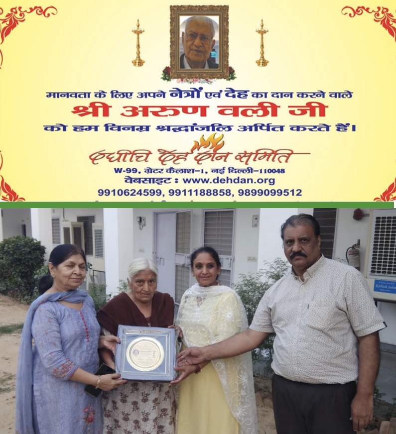 श्रीमती जशोदा वधवा ने मानवता के लिए एक महान कार्य किया, क्योंकि उनका नेत्रदान और त्वचादान 06.06.2025 को दधीचि देहदान समिति द्वारा सफलतापूर्वक संपन्न करवाया गया था।