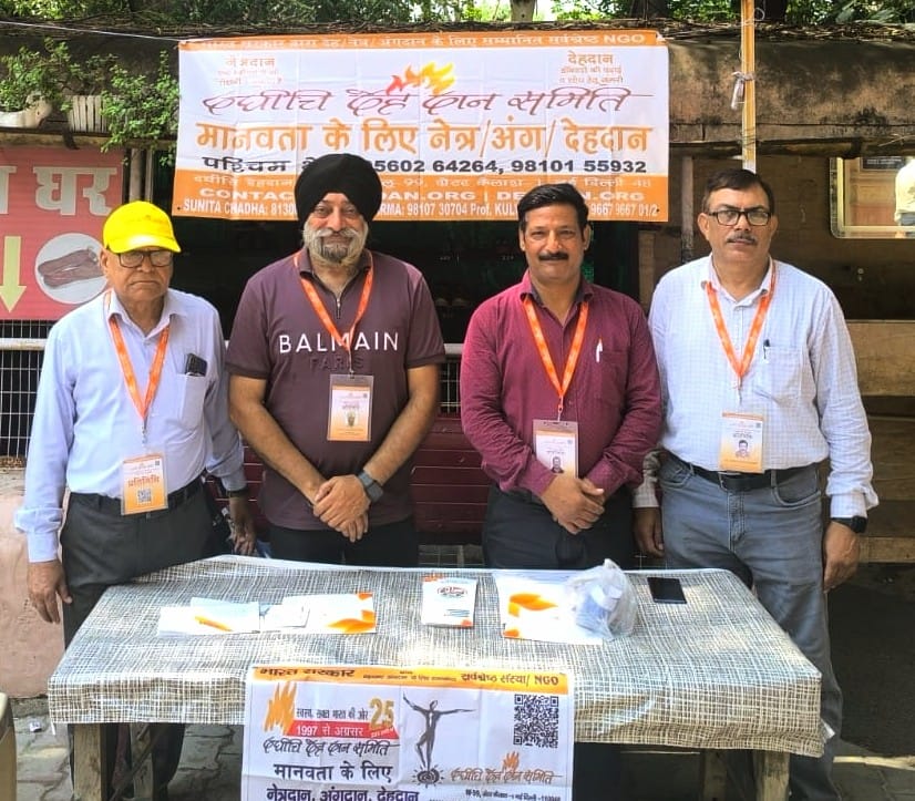 दिनांक 30 जून 2025 को मानसरोवर पार्क में हिंद केसरी सीनियर सिटीजन वेलफेयर एसोसिएशन की अर्धवार्षिक सभा आयोजित हुई, जिसमें दधीचि देहदान समिति, उत्तरी पूर्वी क्षेत्र की ओर से एक सूचना-टेबल लगाई गई। इस अवसर पर 5 लोगों ने संकल्प पत्र भरे, जबकि लगभग 30 लोगों ने समिति के पत्रक लिए और समिति के कार्यों के बारे में जानकारी प्राप्त की।