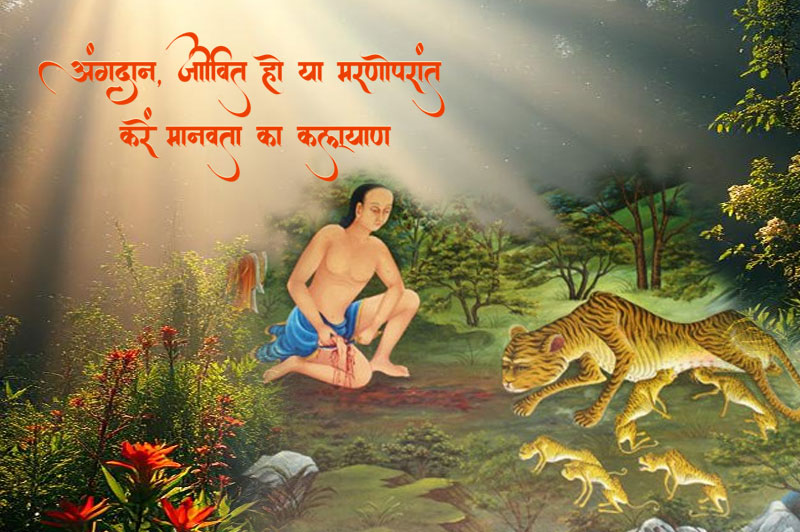 इतिहास और समाज में ऐसे कई महान उदाहरण मिलते हैं।कहा जाता है कि राजकुमार सत्व ने सात शावकों को भूख से बचाने के लिए अपने शरीर का त्याग कर दिया था।