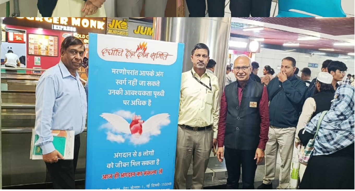 On 12 November 2025, an awareness initiative on organ and body donation was conducted at Kashmere Gate Metro Station. A meeting was held with Shri Dharam Vir Yadav, Station Master, during which the importance and procedure of organ and body donation were explained to the staff members in detail.