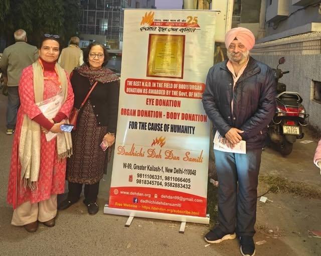 समिति की ओर से श्री जगमोहन जी, श्रीमती गीता आहूजा जी, श्रीमती सत्या गुप्ता जी, श्रीमती राधा अग्रवाल जी, श्री कुलविंदर जी और श्री अनिल जी प्रार्थना सभा में उपस्थित रहे। सभास्थल के बाहर दधीचि देहदान समिति की स्टैंडी लगाकर लोगों को अंगदान और देहदान के विषय में जागरूक किया गया तथा लगभग 50 पत्रक वितरित किए गए।