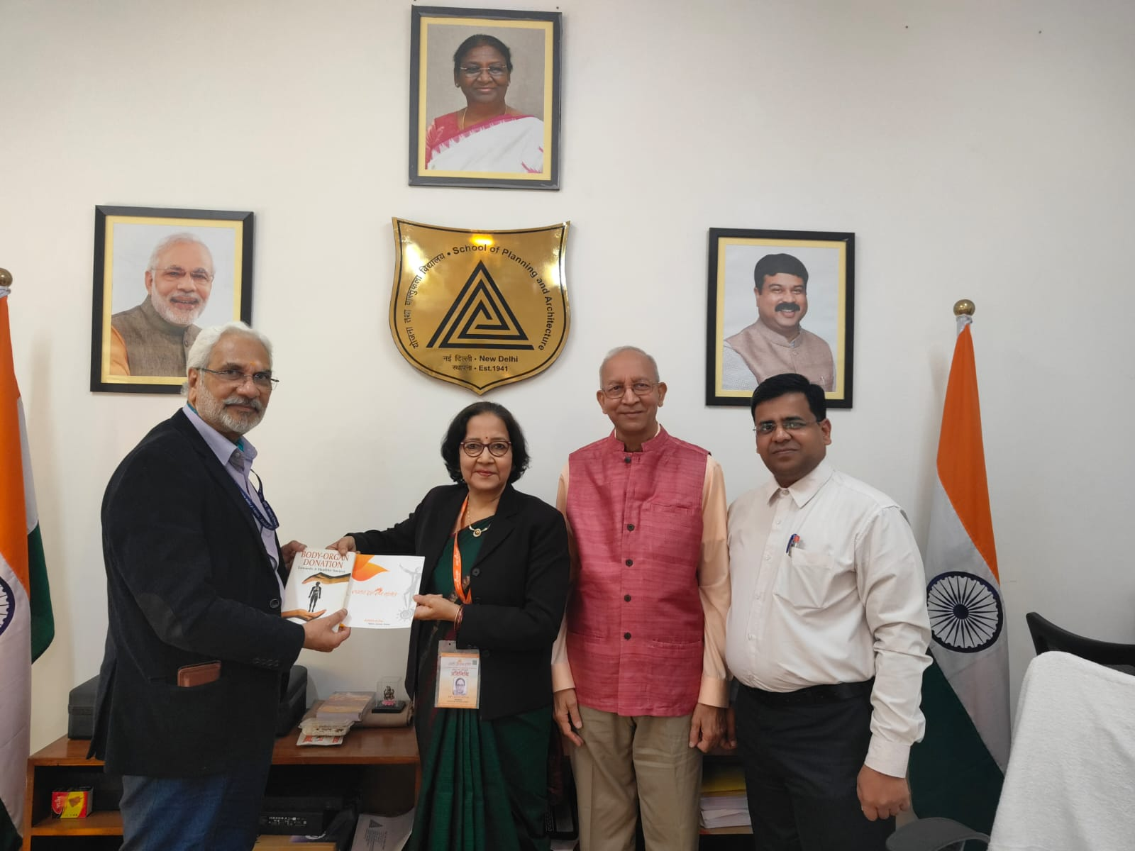 दिनांक 20.11.2025 को स्कूल ऑफ प्लानिंग एंड आर्किटेक्चर (एसपीए), दिल्ली के निदेशक श्री प्रोफेसर डॉ. वी. के. पॉल जी के साथ दधीचि देहदान समिति की उपाध्यक्ष श्रीमती सत्या गुप्ता जी और श्री तेजस्वी गोयल जी की बैठक हुई।